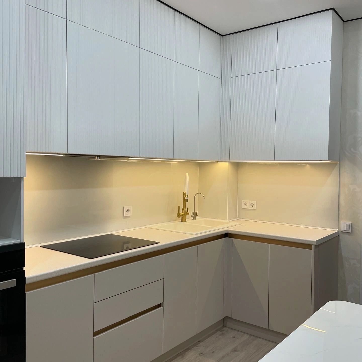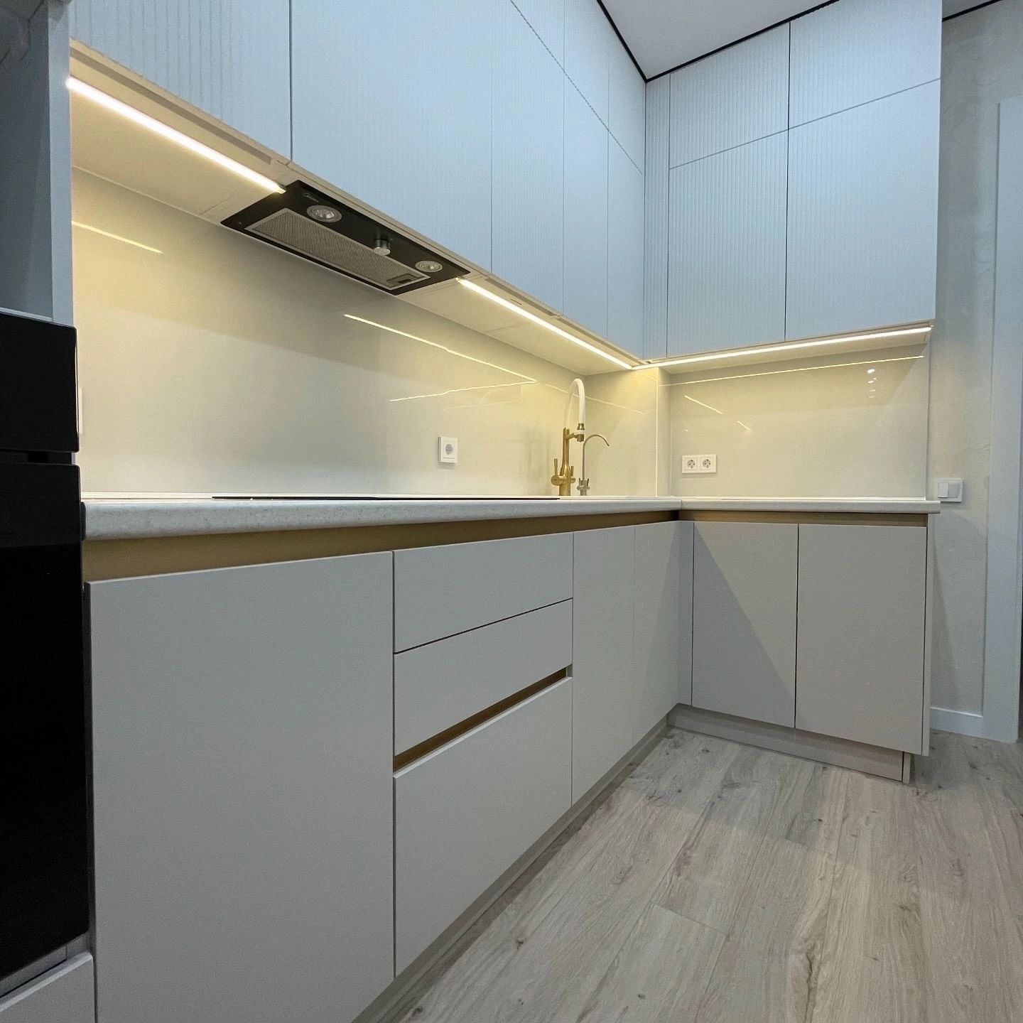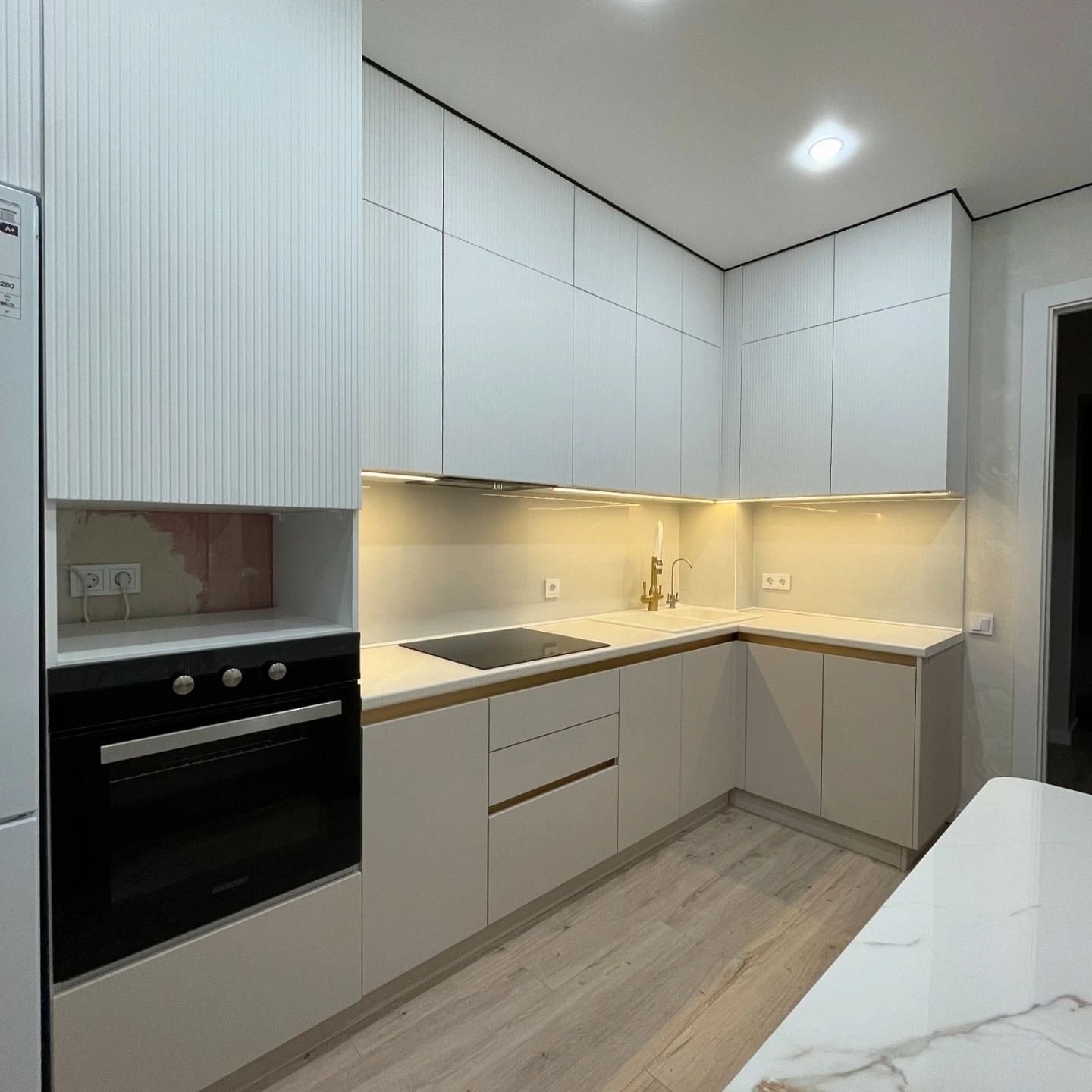▪️ Размер кухни: 3000х1500х2450 (ШхВхГ) ▪️ Корпус ЛДСП ▪️ Фасады МДФ в пленке ▪️ Столешница искусственнный камень ▪️ Ручка Gola ▪️ Петли Blum (Австрия) ▪️ Подсветка рабочей зоны ▪️ Сушка для посуды хром Boyard ▪️ ЦЕНА С УЧЕТОМ ДОСТАВКИ И СБОРКИ на момент установки
