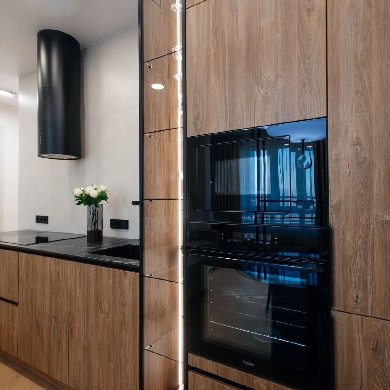 ▪️ Размер кухни: 3900х2600 (ШхВхГ) ▪️ Корпус ЛДСП ▪️ Фасады МДФ в пленке ▪️ Столешница искусственнный камень ▪️ Ручка Gola ▪️ Петли GTV ▪️ Стеклянная витрина с подсветкой черный профиль и стекло бронза ▪️ Сушка для посуды хром Boyard ▪️ ЦЕНА С УЧЕТОМ ДОСТАВКИ И СБОРКИ на момент установки