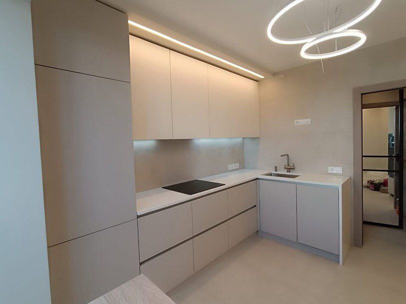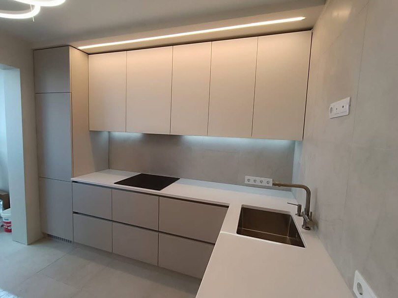 ▪️ Размер: 3600x2600x600 (ШхВхГ) ▪️ Корпус ЛДСП серый ▪️ Фасады МДФ в пленке бежевые ▪️ Ручки торцевые ▪️ Петли с доводчиком GTV ▪️ Сушка для посуды хром ▪️ ЦЕНА С УЧЕТОМ ДОСТАВКИ БЕЗ СБОРКИ на момент установки, не включены в стоимость фартук,столешница,мойка,смеситель и подсветка.
