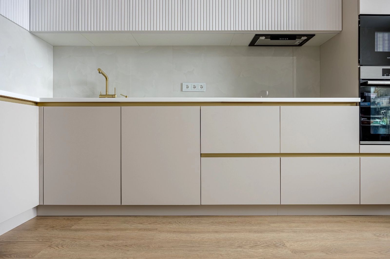 ▪️ Размер: 2450x2800x700 (ШхВхГ) ▪️ Корпус ЛДСП Томлесдрев кена ▪️ Фасады МДФ в пластике ETERNO Jasmine ▪️ Столешница 12 мм искуственный камень Hanex Kashmere ▪️ Ручка Gola ▪️ Петли Blum (Австрия) ▪️ Система выдвижения ящиков Blum Tandembox Antaro ▪️ Подъемный механизм верхних горизонтальных модулей Blum Aventos ▪️ Мойка стальная подстольного монтажа ▪️ Подсветка врезная ▪️ Сушка для посуды хром Boyard ▪️ Лоток для приборов ▪️ ЦЕНА С УЧЕТОМ ДОСТАВКИ И СБОРКИ на момент установки