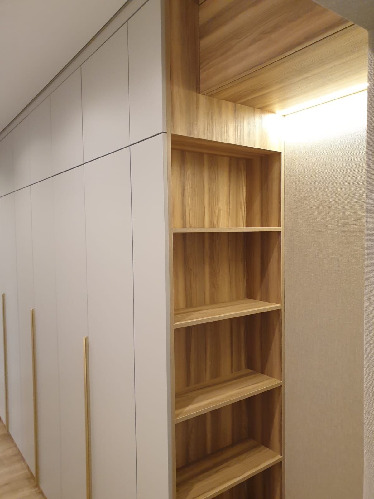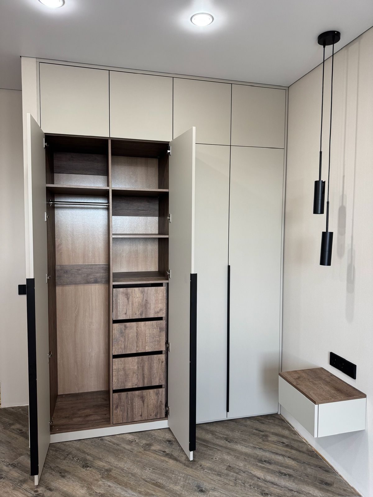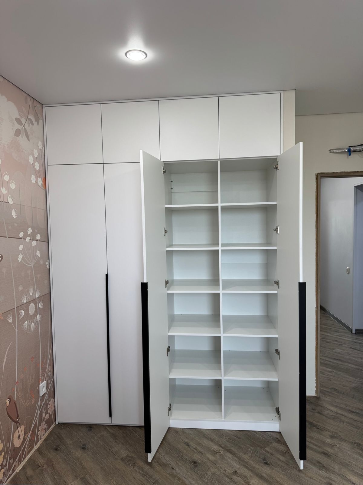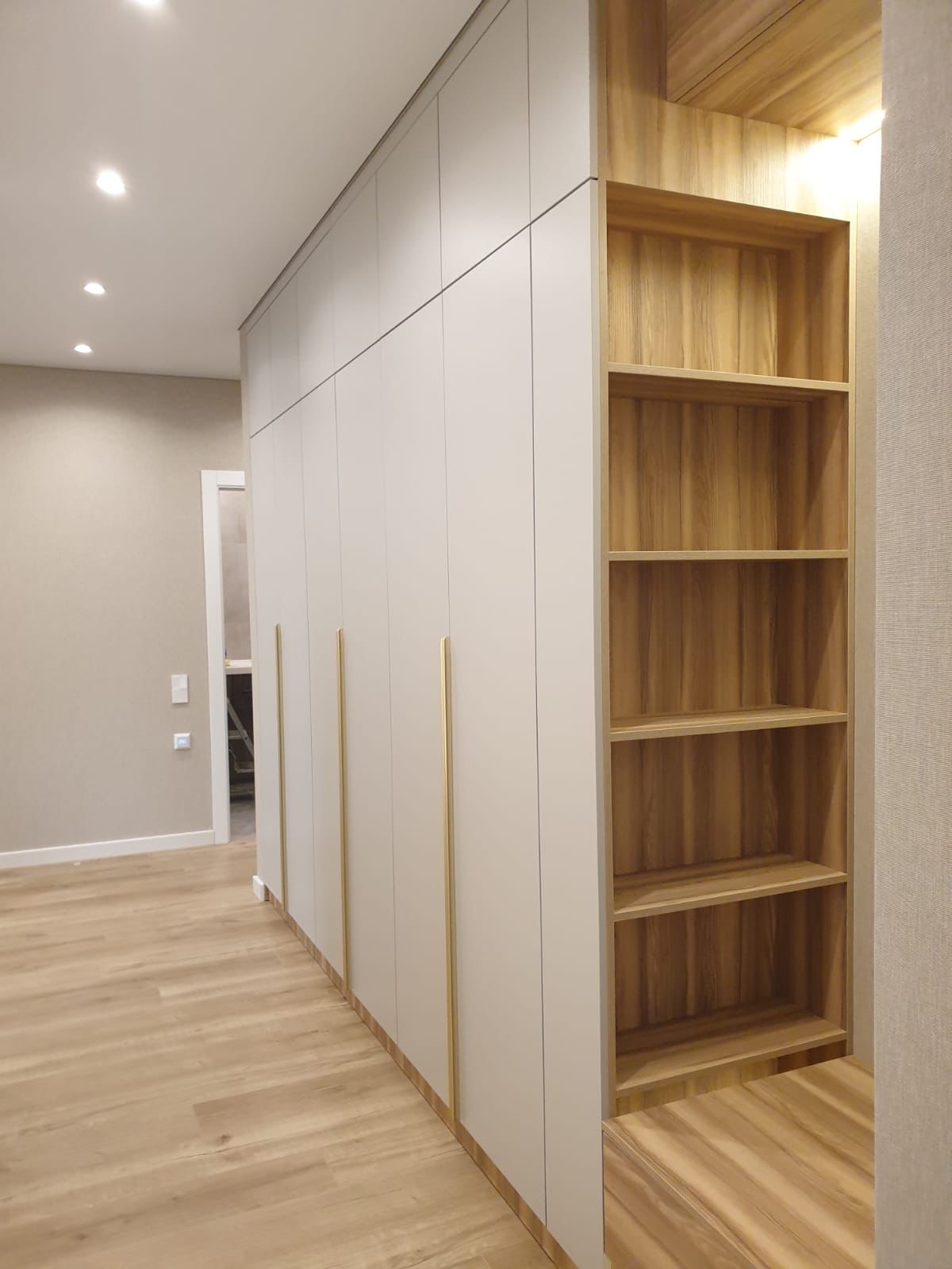 Шкаф в спальню распашной с открытыми полочками